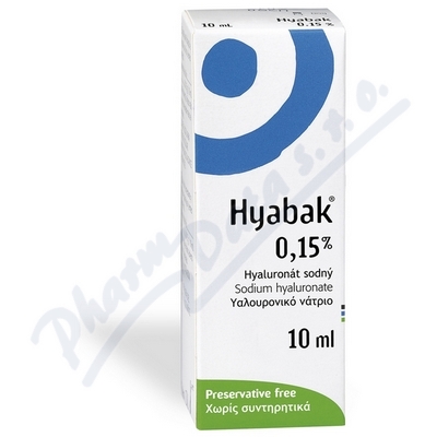 Hyabak je hypotonický roztok, který se kape do očí, nebo na kontaktní čočky. Obsahuje kyselinu hyaluronovou (zvlhčuje a lubrikuje) a actinoquinol (má anti-UV vlastnosti).