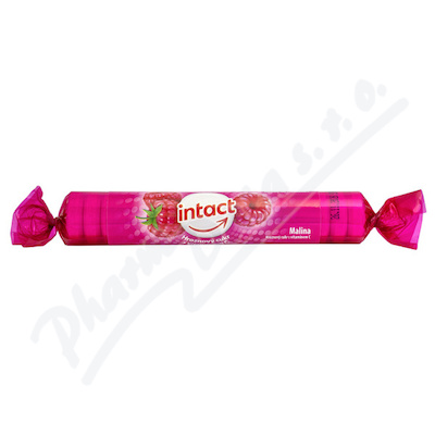 Intact pastilky z hroznového cukru s příchutí malina s vitaminem C. Doplněk stravy, vitamínový přípravek.