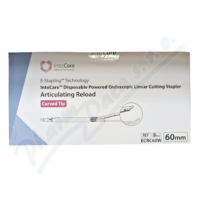 Jednorázový artikulační zásobník pro elektrický endoskopický lineární katr IntoCareTM. Na každé straně od středové linie zásobníku jsou tři řady sponek.
