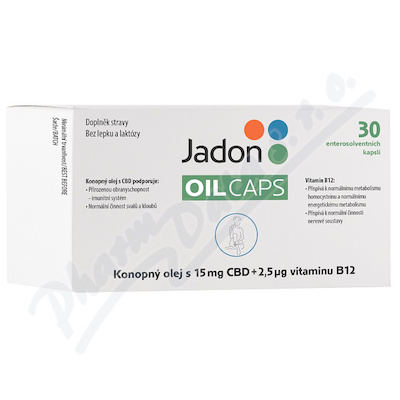 Doplněk stravy Jadon OIL CAPS 30 kapslí s obsahem konopného oleje s CBD a s vitaminem B12. Podporuje přirozenou obranyschopnost, imunitní systém a normální činnost kloubů a svalů. Díky vitaminu B12 také podporuje normální činnost nervové soustavy.