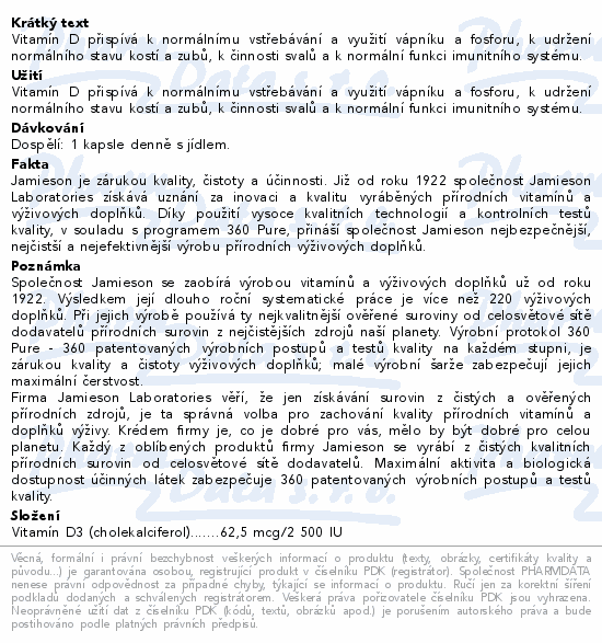 Vitamín D přispívá k normálnímu vstřebávání a využití vápníku a fosforu, k udržení normálního stavu kostí a zubů, k činnosti svalů a k normální funkci imunitního systému.