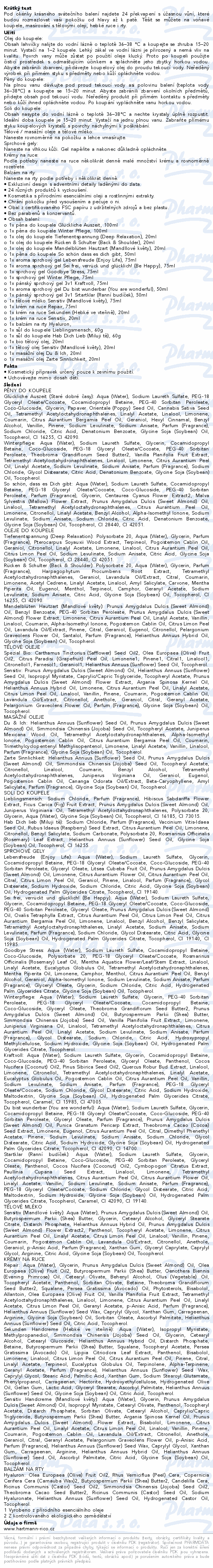 Pod okénky krásného svátečního balení najdete 24 překvapení s úžasnou vůní, které budou rozmazlovat vaši pokožku od hlavy až k patě. Těšit se můžete na voňavé koupele, masírování s tělovými oleji, hebké ruce i rty.