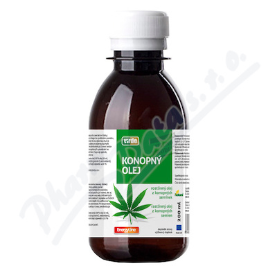 Olej získaný ze semen konopí lisovaných za studena pro rozmanité využití, zejména pro příznivé ovlivnění kardiovaskulárního systému a zklidnění nervového systému.