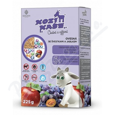 Obilno-mléčná kaše s kojeneckým kozím mlékem v prášku. Bez přídavku cukrů. Obilno-mléčný příkrm pro výživu kojenců a malých dětí od ukončeného 6. měsíce věku - jako součást vyvážené smíšené stravy. Vhodné při zavádění lepku do stravy.