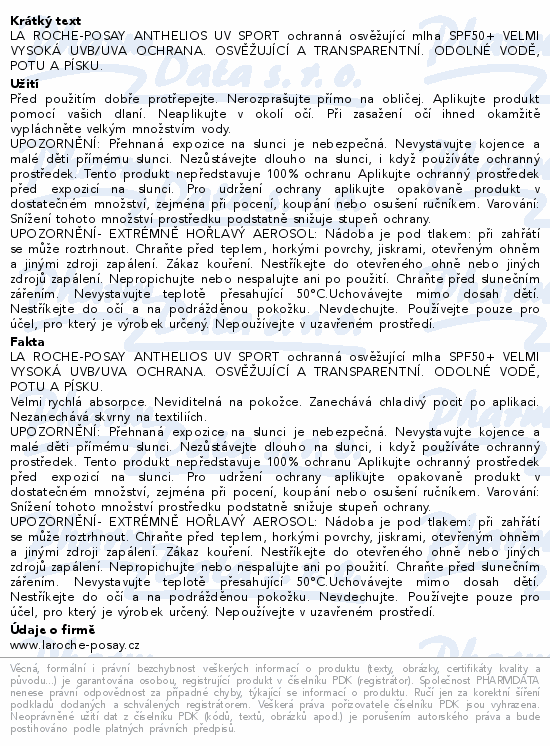 LA ROCHE-POSAY ANTHELIOS UVsport mlha SPF50+ 200ml