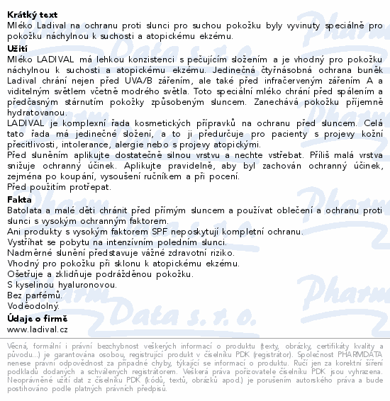 Mléko Ladival na ochranu proti slunci pro suchou pokožku byly vyvinuty speciálně pro...