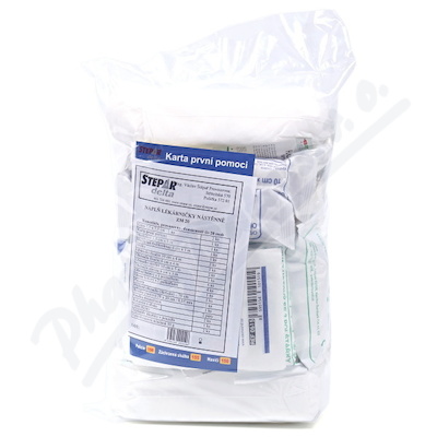 Lékárnička s náplní pro poskytnutí dočasné předlékařské první pomoci....
