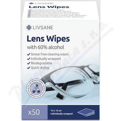 Jednotlivě balené čisticí ubrousky s 60% izopropylalkoholem pro snadné čištění brýlí (slunečních, dioptrických, ochranných) a čoček fotoaparátů. Složení pro šetrné čištění bez zanechání šmouh nebo vláken. Rychleschnoucí. Biologicky odbouratelné.
