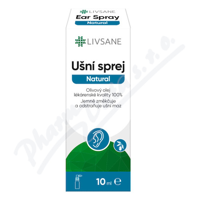 LIVSANE Ušní sprej NATURAL s olivovým olejem lékárenské kvality jemně změkčuje a odstraňuje ušní maz. Při používání jednou týdně pomáhá předcházet hromadění ušního mazu. Je vhodný pro dospělé (včetně těhotných a kojících žen) a dětí*.