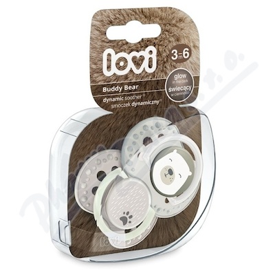 Dudlík se standardním štítkem, svítící disk a tečky usnadňují dudlíku ve tmě. Neobsahuje BPA. V balení 2ks. Silikonový symetrický dynamický dudlík LOVI byl klinicky testován.