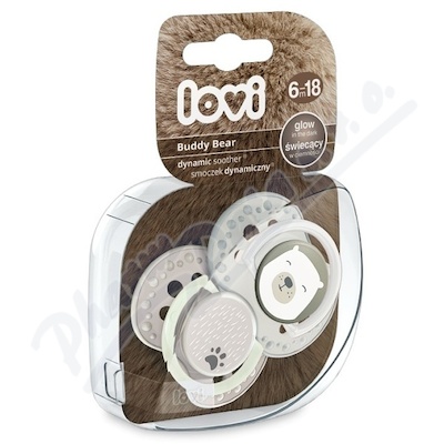 Dudlík se standardním štítkem, svítící disk a tečky usnadňují nalezení dudlíku ve tmě. Všechny dudlíky LOVI jsou vyrobeny ze silikonu, který je bez chuti a bez zápachu.
