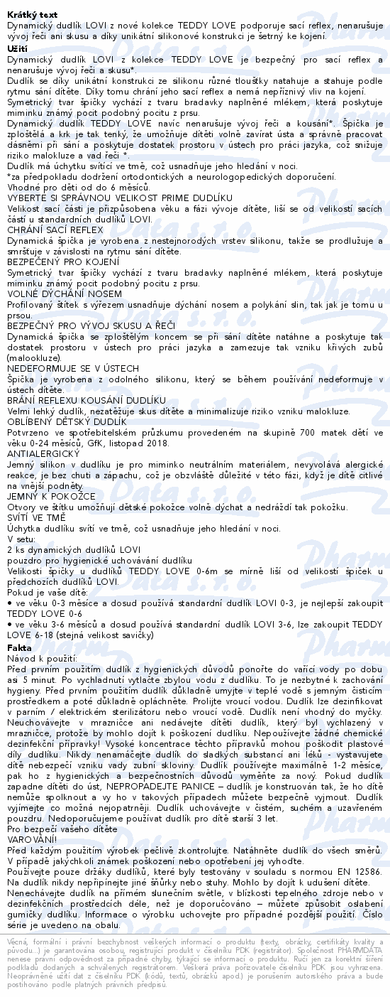 Dynamický dudlík LOVI z nové kolekce TEDDY LOVE podporuje sací reflex, nenarušuje vývoj řeči ani skusu a díky unikátní silikonové konstrukci je šetrný ke kojení.