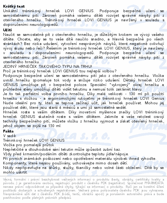 Unikátní tréninkový hrneček LOVI GENIUS. Podporuje bezpečné učení se samostatnému pití. Zároveň pomáhá vašemu dítěti rozvíjet správné návyky pití z otevřeného hrnečku. Tréninkový hrneček LOVI GENIUS je navržený v souladu s doporučeními neurologopedů.