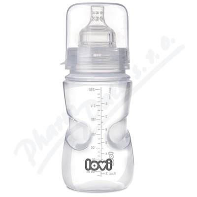 Polypropylenová láhev o objemu 250ml se speciálně konstruovaným víčkem, které umožňuje bezpečně sterilizovat láhev a všechny její části za pouhou 1, 5 min.