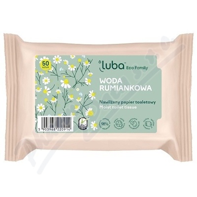 Vlhčený toaletní papír Luba Eco Family má jedinečné složení s heřmánkem poskytuje pocit pohodlného čištění a péče. Fyziologické pH, dermatologicky testováno. Papírový materiál 100% přírodního původu, splachovatelný do WC.