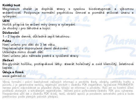 Magnesium chelát je doplněk stravy s vysokou biodostupností a výbornou snášenlivostí. Podporuje normální psychickou činnost a pomáhá snižovat únavu a vyčerpání.