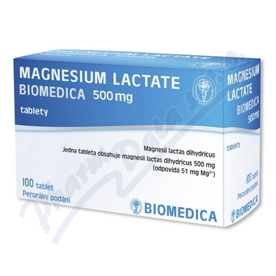 Přípravek Magnesium lactate Biomedica obsahuje hořčík, který patří k nejdůležitějším prvkům v lidském těle. Je nezbytný pro stavbu kostí, chrupavek a zubů a je významný pro normální funkci nervového, svalového, srdečně-cévního a imunitního systému. Čtěte pozorně příbalový leták.