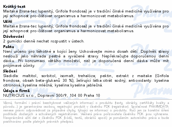 Maitake (trsnaÂtec lupenitý, Grifola frondosa) je v tradiční čínské medicíně využívána pro její schopnost proÂčišťovat organismus a harmonizovat metabolismus.