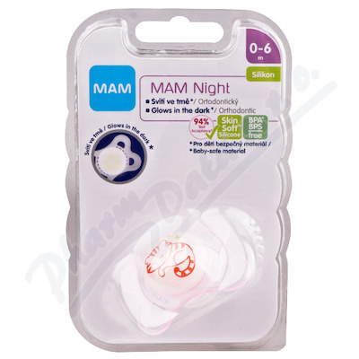 MAM dětský dudlík Night je ortodontický a má patentovanou sametovou savičku ze silikonu. Tvar savičky je anatomicky vhodný pro vývoj dásní. Knoflík na uchopení nikdy nepřekáží, ale vždy jej lze dobře uchopit.
