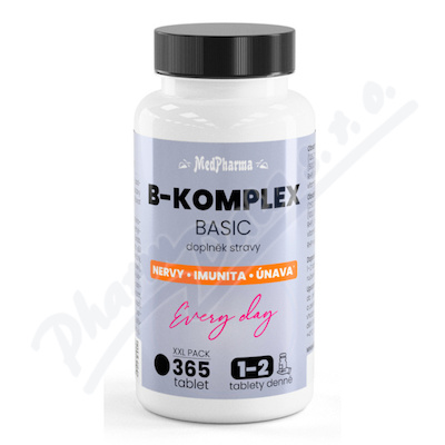 B-komplex Basic je doplněk stravy s vitaminy skupiny B včetně vitaminu B6, který podporuje správnou činnost nervové soustavy a imunitního systému, pomáhá snižovat míru únavy a vyčerpání.