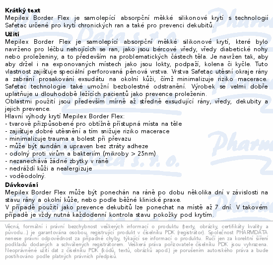 Mepilex Border Flex je samolepící absorpční měkké silikonové krytí s technologií Safetac určené pro krytí chronických ran a také pro prevenci dekubitů.