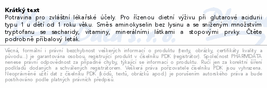 Farmakoterapeutická skupina: Různé přípravky - Celková výživa - Potraviny pro zvláštní lékařské účely (pzlú) (česká atc skup