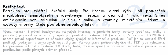 Farmakoterapeutická skupina: Různé přípravky - Celková výživa - Potraviny pro zvláštní lékařské účely (pzlú) (česká atc skup
