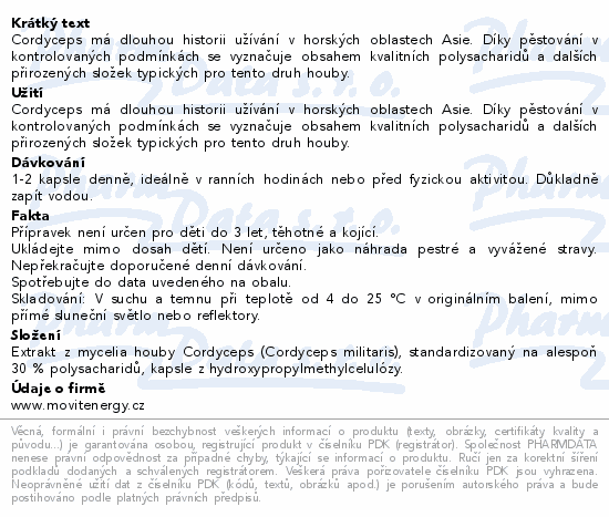 Cordyceps má dlouhou historii užívání v horských oblastech Asie. Díky pěstování v kontrolovaných podmínkách se vyznačuje obsahem kvalitních polysacharidů a dalších přirozených složek typických pro tento druh houby.