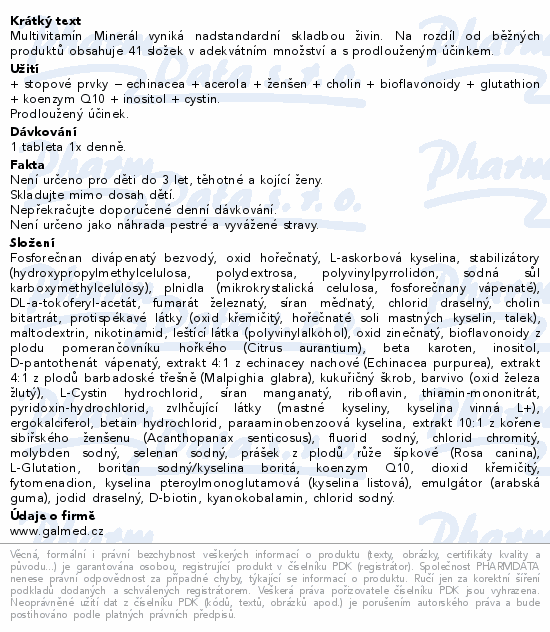 Multivitamín Minerál vyniká nadstandardní skladbou živin. Na rozdíl od běžných produktů obsahuje 41 složek v adekvátním množství a s prodlouženým účinkem.