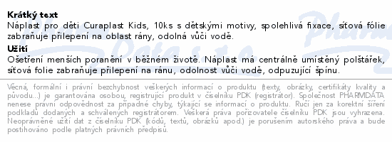 Náplast pro děti Curaplast Kids, 10ks s dětskými motivy, spolehlivá fixace, síťová fólie zabraňuje přilepení na oblast rány, odolná vůči vodě.