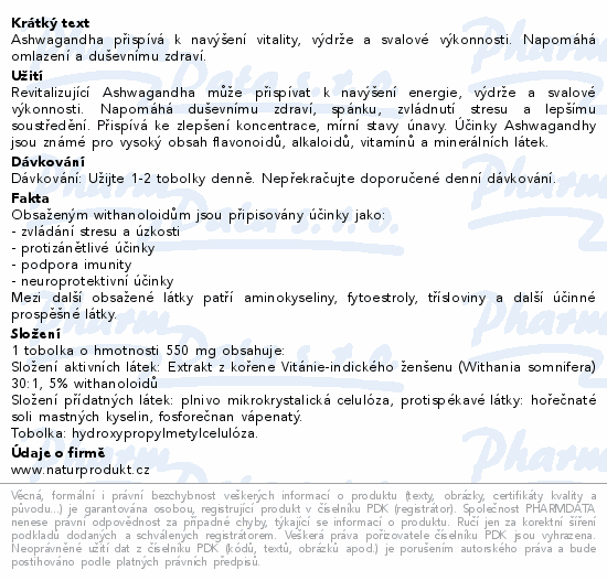 Ashwagandha přispívá k navýšení vitality, výdrže a svalové výkonnosti. Napomáhá omlazení a duševnímu zdraví.