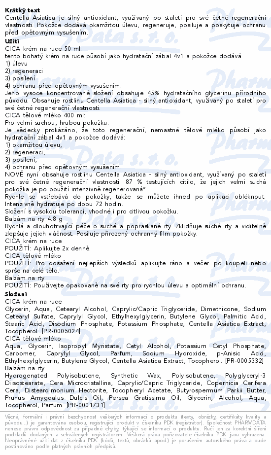 Centella Asiatica je silný antioxidant, využívaný po staletí pro své četné regenerační vlastnosti. Pokožce dodává okamžitou úlevu, regeneruje, posiluje a poskytuje ochranu před opětovným vysušením.