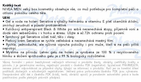 NIVEA MEN velký box kosmetiky obsahuje vše, co muž potřebuje pro kompletní péči o citlivou pokožku celého těla.