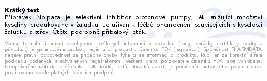 Farmakoterapeutická skupina: Léčiva k terapii onemocnění spojených s poruchou acidity - Inhibitory protonové pumpy - Pantoprazol