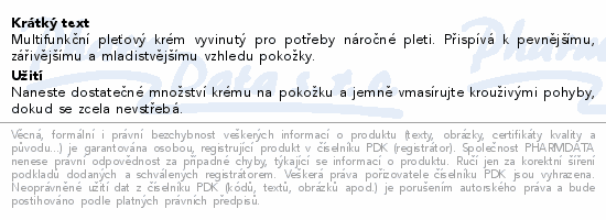 Multifunkční pleťový krém vyvinutý pro potřeby náročné pleti. Přispívá k pevnějšímu, zářivějšímu a mladistvějšímu vzhledu pokožky.