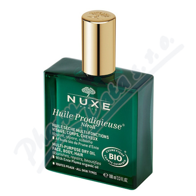 Huile Prodigieuse Néroli na tvář, tělo a vlasy. Certifikovaný BIO multifunkční suchý olej, který zanechává pokožku vyživenou, vyhlazenou a zkrášlenou; a vlasy vyživené a lesklé.