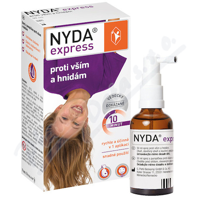 NYDA express je určena pro ošetření vlasové pokožky hlavy v případě napadení vší dětskou (pediculosis capitis). Při použití dle návodu je NYDA účinná i proti nymfám (larvy) a vajíčkům (hnidám).