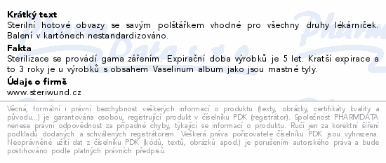 Sterilní hotové obvazy se savým polštářkem vhodné pro všechny druhy lékárniček. Balení v kartónech nestandardizováno.