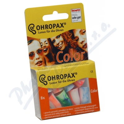 Chrániče sluchu OHROPAX Color 8ks v plastovém obalu na zavěšení. Jsou jemné, měkké, anatomicky tvarované a příznivě působící na sliznice vnějšího zvukovodu. Jsou vyrobeny z měkké polyuretanové pěny, různých barevných odstínů.