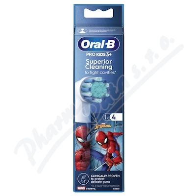 Oral-B Pro Kids náhradní hlavice s motivy Spiderman. Navržen speciálně tak, aby byl jemný pro dětská ústa. Balení 4 ks.