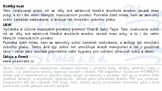 Tato voskovaná zubní nit se díky své saténově hladké struktuře snadno zavádí mezi zuby, a to i do velmi těsných mezizubních prostor. Pomáhá čistit místa, kam se samotný zubní kartáček nedostane, a snižuje tak množství zubního plaku.