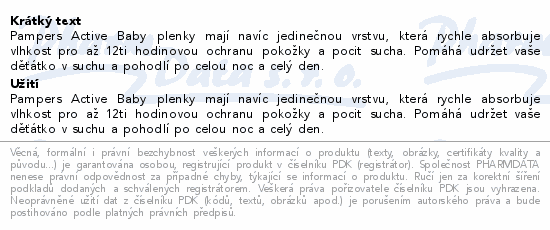 Pampers Active Baby plenky mají navíc jedinečnou vrstvu, která rychle absorbuje vlhkost pro až 12ti hodinovou ochranu pokožky a pocit sucha. Pomáhá udržet vaše děťátko v suchu a pohodlí po celou noc a celý den.
