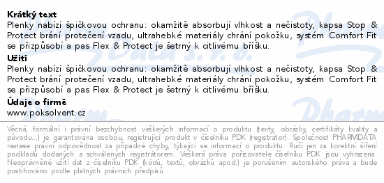 Plenky nabízí špičkovou ochranu: okamžitě absorbují vlhkost a nečistoty, kapsa Stop & Protect brání protečení vzadu, ultrahebké materiály chrání pokožku, systém Comfort Fit se přizpůsobí a pas Flex & Protect je šetrný k citlivému bříšku.