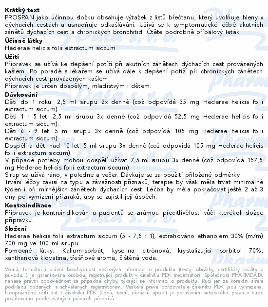Přípravek PROSPAN jako účinnou složku obsahuje výtažek z listů břečťanu,...