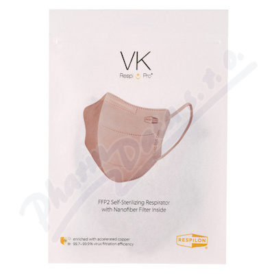 Respirátor VK RespiPro je nanovlákenná filtrační obličejová maska sloužící k ochraně uživatele proti virům. Její filtrační účinnost splňuje třídu FFP2.