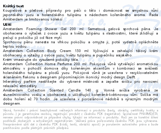 Koupelové a pleťové přípravky pro péči o tělo i domácnost se smyslnou vůní japonského yuzu a holandského tulipánu s nádechem kořeněného aroma. Řada Amsterdam je limitovanou kolekcí