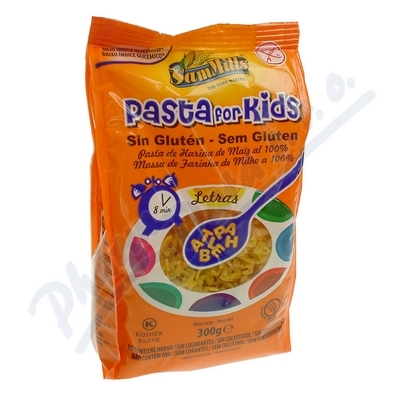 Kukuřičné těstoviny bezlepkové sušené - Písmenka. Výrobek je vhodný pro bezlepkovou dietu. Díky hravému a veselému vzhledu potěšíte touto těstovinou obzvlášť malé strávníky.