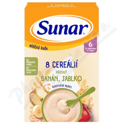 Sunar mléčná kaše s 8 cereáliemi skvěle chutná díky obsahu plnotučného mléka. Celozrnné cereálie v kaši jsou skvělým zdrojem vlákniny. Obsahuje lepek. Vhodné pro děti od ukončeného 6. měsíce.