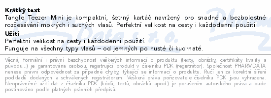Tangle Teezer Mini je kompaktní, šetrný kartáč navržený pro snadné a bezbolestné rozčesávání mokrých i suchých vlasů. Perfektní velikost na cesty i každodenní použití.