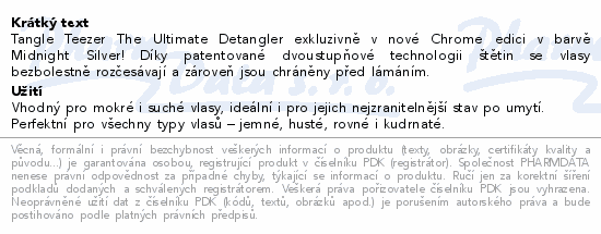 Tangle Teezer The Ultimate Detangler exkluzivně v nové Chrome edici v barvě Midnight Silver! Díky patentované dvoustupňové technologii štětin se vlasy bezbolestně rozčesávají a zároveň jsou chráněny před lámáním.